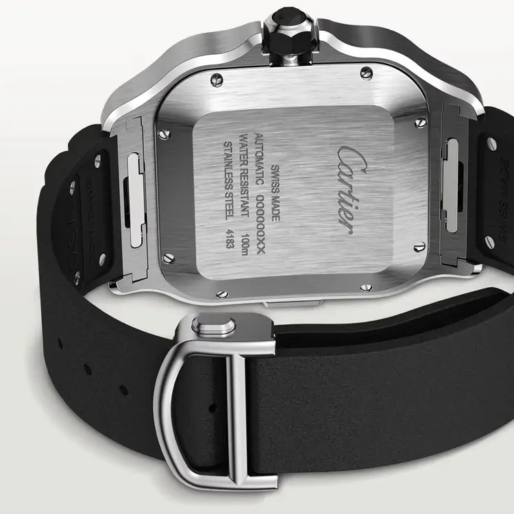 - ĐỒNG HỒ CARTIER SANTOS DE CHRONOGRAPH WSSA0017 được trang bị công nghệ kính Sapphire với độ chống xước gần như tuyệt đối.