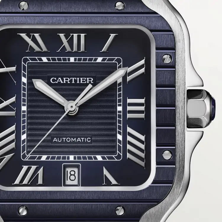 - ĐỒNG HỒ CARTIER SANTOS DE WSSA0048 được trang bị công nghệ kính Sapphire với độ chống xước gần như tuyệt đối.