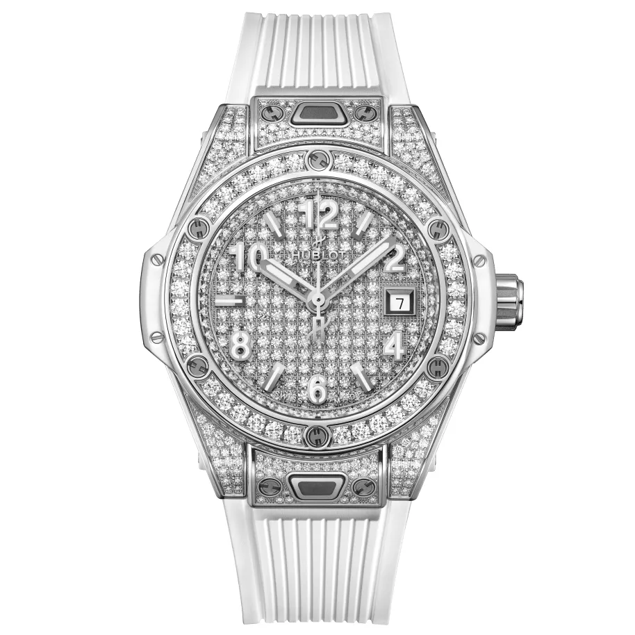 HUBLOT BIG BANG ONE CLICK STEEL WHITE FULL PAVÉ 485.SE.9000.RW.1604 33MM