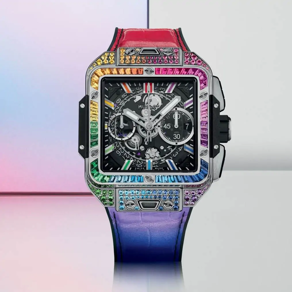 HUBLOT SQUARE BANG UNICO TITANIUM RAINBOW 821.NX.0117.LR.0999
