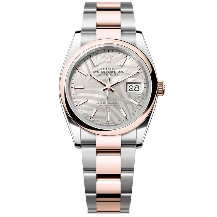 - Rolex Datejust 36 M126201-0032 có thiết kế dây đeo Oyster, mối nối 3 mảnh chắc chắn với chất liệu Rolesor Everose - hỗn hợp thép Oystersteel và vàng Everose đẳng cấp và sang trọng.
