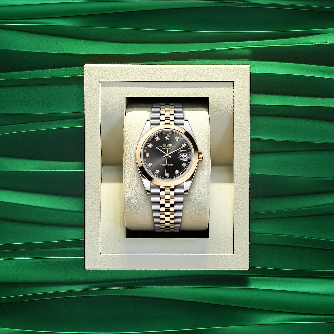 - Rolex Datejust 41 M126303-0006 sở hữu chứng nhận Superlative Chronometer (chứng nhận COSC + Rolex sau khi lắp vỏ) cho độ chính xác và độ ổn định.